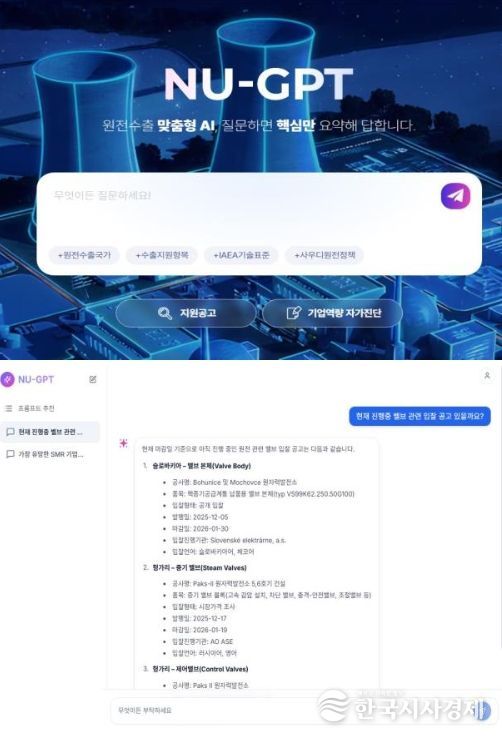 ‘NU-GPT’는 2022년부터 축적한 해외입찰·요건 정보, 발주계획, 세계시장 뉴스와 국제원자력기구(IAEA)·경제협력개발기구(OECD)·세계 원자력협회(WNA) 출간 보고서 등 1만여 건을 학습하여 개발됐다. 기업들은 NU-GPT에 질문만 하면 수많은 자료를 확보·분석하지 않고도 심도있는 시장정보와 인사이트를 얻게 돼 수출 전문인력을 채용한 효과를 누릴 것으로 기대된다.