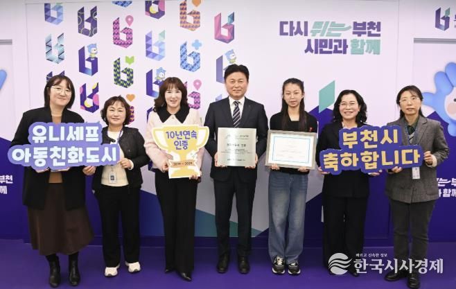 한국시사경제 경기취재본부 | 부천시는 유니세프 한국위원회로부터 ‘유니세프 아동친화도시’ 인증을 갱신했다고 14일 밝혔다. 이번 인증은 2019년 12월 최초 인증에 이어 자격을 유지한 것으로, 유효기간은 2029년 12월 30일까지다.