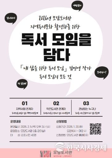 한국시사경제 윤광희 기자 | 김포시 모담도서관은 독서 모임을 주제로 2월 5일 목요일 오후 3시부터 5시까지 저자 강연을 운영한다.