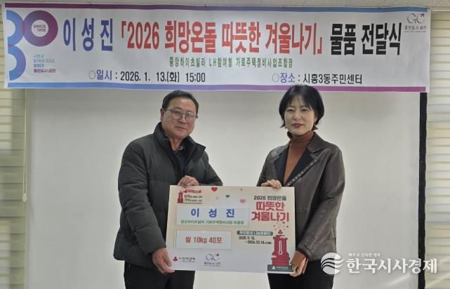 이어 시흥3동 중앙하이츠빌라 가로주택정비사업조합장 이성진 씨도 ‘2026 희망온돌 따뜻한 겨울나기’ 사업에 동참했다. 이 조합장은 지난 13일 시흥3동 주민센터에 저소득 주민들을 위해 쌀 10kg 40포를 기탁했다. 지난해에도 쌀 400kg을 후원하는 등 지속적인 나눔을 실천해 오고 있다.