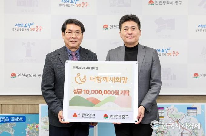 한편, 성금 기탁식은 지난 15일 오후 중구 제2청 구청장실에서 김정헌 인천 중구청장, 더함께새희망 김정해 회장 등이 참석한 가운데 진행됐다.