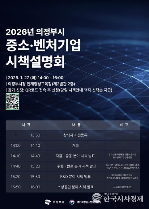 한국시사경제 경기북부취재본부 | 의정부시는 1월 27일 시청 인재양성교육장에서 ‘2026년 중소‧벤처기업 시책설명회’를 개최한다.