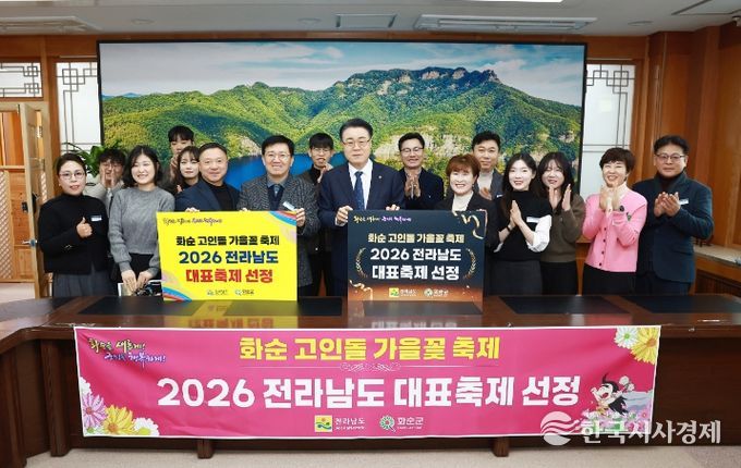 한국시사경제 권충현 기자 | 화순군은 16일 ‘화순 고인돌 가을꽃 축제’가 대한민국콘텐츠대상을 3년 연속 수상한 데 이어 ‘2026 전라남도 대표축제’까지 이어지며 연이은 쾌거를 이뤘다고 밝혔다.