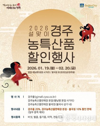 한국시사경제 경북취재본부 | 경주시는 2026년 병오년 설을 맞아 1월 19일부터 2월 20일까지 ‘경주농특산물판매장 설맞이 특별할인 행사’를 진행한다고 18일 밝혔다.