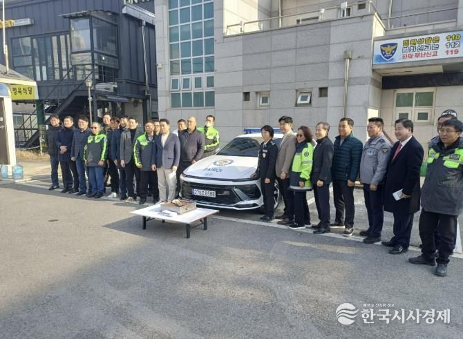 한국시사경제 경기북부취재본부 | 포천동 자율방범대는 지난 17일 포천파출소 앞에서 순찰차량의 무사고 운행과 대원들의 안전한 활동을 기원하는 ‘순찰차량 안전기원제’를 개최했다.