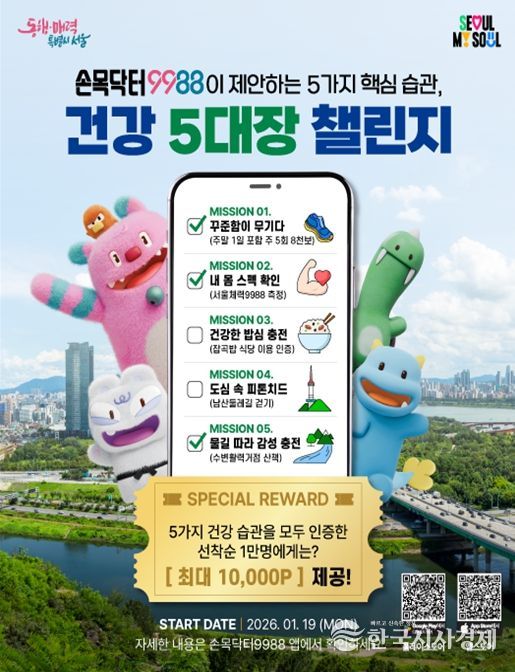 서울시는 새해를 맞아 시민들이 건강한 생활 습관을 자연스럽게 실천할 수 있도록 손목닥터9988 앱을 활용한 ‘건강 5대장 인증 챌린지’ 운영에 나섰다.