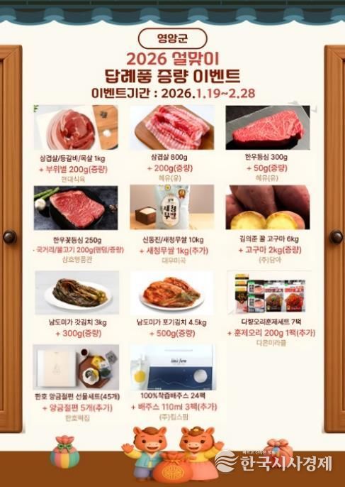 한국시사경제 권충현 기자 | 영암군이 2/18일까지 고향사랑기부 답례품 증량 이벤트 ‘설엔 고향사랑, 영암은 덤으로’를 시행한다.