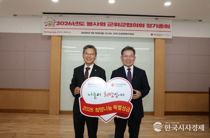 한국시사경제 이정이 기자 | 군위군과 군위군의회가 2026년 새해를 맞아 지역사회 나눔 문화에 동참하고 인도주의 활동을 지원하기 위해 대한적십자사 대구광역시지사에 적십자 특별회비를 전달했다.