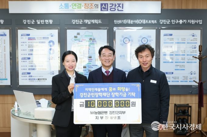 NH농협은행 강진군지부는 강진군 지역 사회에 기여하기 위해 1천만 원의 장학금을 기탁 했으며, 2005년부터 현재까지 총 31회에 걸쳐 누적 2억8천4백만 원의 장학금을 기탁하며 지역사회와 함께 성장하는 금융기관으로서의 역할을 성실히 수행해 오고 있다.