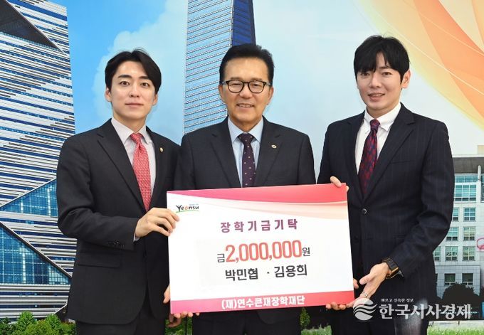 한국시사경제 윤광희 기자 | 연수큰재장학재단은 지난 20일 박민협 연수구의회 의원과 김용희 인천시의회 의원이 지역 인재 육성과 교육 발전을 위해 200만 원을 기탁했다고 밝혔다.