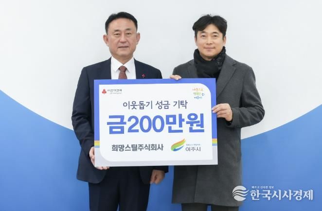 한국시사경제 기동취재팀 | 지난 19일 여주시 삼교동 소재 희망스틸주식회사 김영기 대표는 여주시를 방문하여 이웃돕기 성금 200만원을 기탁했다.