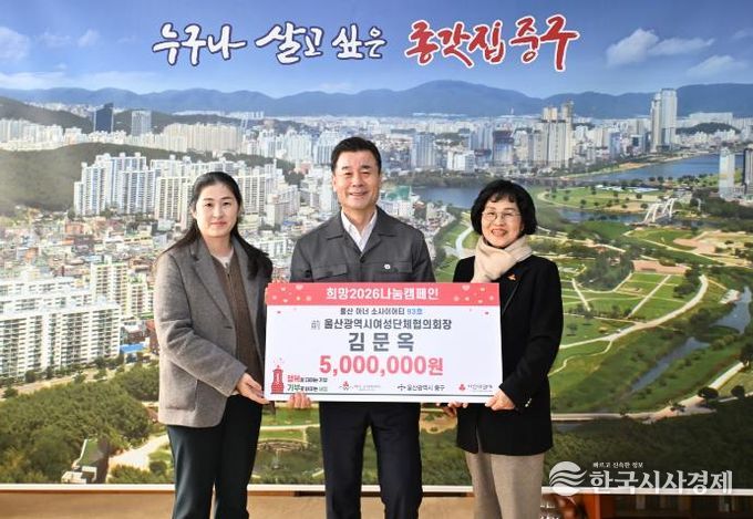 이번 전달식에는 김영길 중구청장과 김문옥 씨, 양호영 울산사회복지공동모금회 사무처장 등 3명이 참석했다.