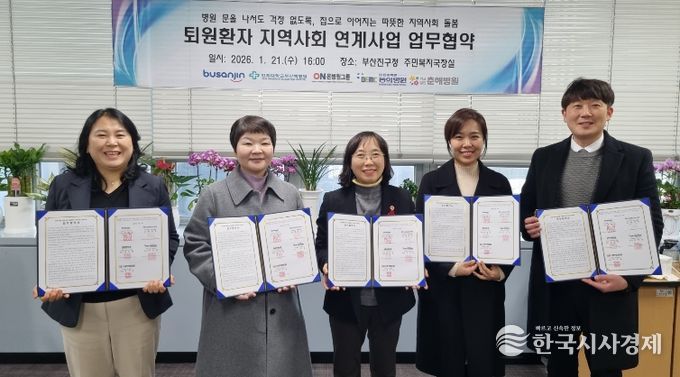 한국시사경제 의료보건팀 | 부산 부산진구는 지난 21일 ▲인제대학교 부산백병원 ▲온그룹의료재단 온병원 ▲학교법인 동의병원 ▲학교법인 춘해병원과 ‘퇴원환자 지역사회 연계사업’협력체계 구축을 위한 업무협약을 체결했다.