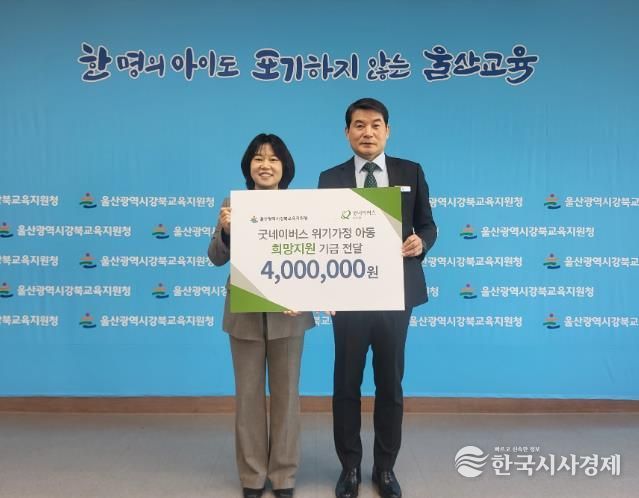 한국시사경제 울산취재본부 | 울산 강북교육지원청은 22일 굿네이버스 울산지부(지부장 박무희)에서 위기가정 학생을 위한 생계비 400만 원을 전달받았다.
