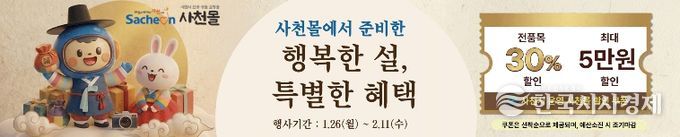 한국시사경제 윤광희 기자 | 사천시가 2026년 설을 맞이해 1월 26일부터 2월 11일까지 사천시 특산물 온라인 쇼핑몰인 '사천몰'에서 전품목 30%할인 행사를 실시한다.