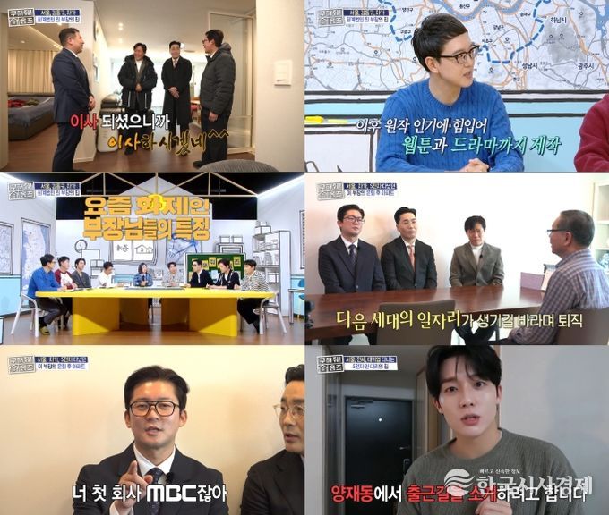 이날 방송은 화제의 드라마 ‘서울 자가에 대기업 다니는 김 부장 이야기(이하 ‘김 부장 이야기’)’를 연상케하며, 배우 박호산과 하도권, 김대호가 ‘구해줘!상사’의 박 상무, 하 부장, 김 차장으로 분해 현실 직장인들의 삶과 부동산 이야기를 생생하게 전했다.