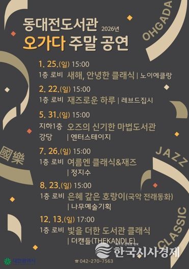한국시사경제 대전취재본부 | 대전 동대전도서관은 25일 ‘새해, 안녕한 클래식’을 시작으로 2026년 ‘오가다 주말 공연’의 포문을 연다.