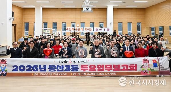 한국시사경제 경기북부취재본부 | 의정부시 송산3동행정복지센터는 1월 23일 지역 주민과 내빈 등 100여 명이 참석한 가운데 ‘성장의 결실과 함께, 더 큰 미래로’를 주제로 ‘2026년 송산3동 주요업무보고회’를 개최했다.