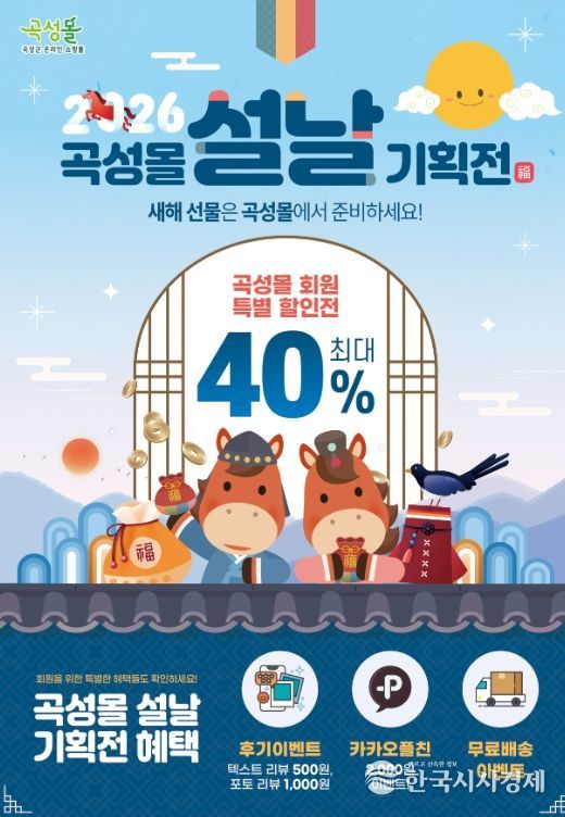 한국시사경제 경제팀 | 전남 곡성군은 설 명절을 맞아 온라인 쇼핑몰 곡성몰에서 곡성몰 福(복) 가득 최대 40% 할인 특별전을 운영한다고 26일 밝혔다.