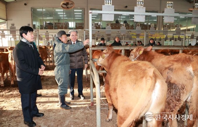 한국시사경제 윤광희 기자 | 의령군은 지난 26일 이른 아침 의령축협이 운영하는 가축시장을 방문해 한우 거래가격 동향과 송아지 경매 상황을 점검하고, 한우 사육 농가의 애로사항을 청취했다.