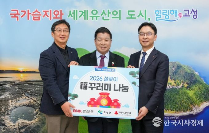 한국시사경제 윤광희 기자 | 고성군은 임재문 BNK경남은행 서부영업그룹부행장이 1월 26일 고성군청을 방문하여 관내 어려운 이웃을 위해 써 달라며 450만 원 상당의 ‘설날맞이 복꾸러미’(식료품세트 18종) 100박스를 전달했다고 밝혔다.