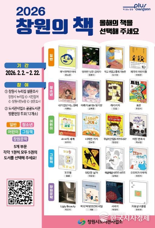 최종 ‘2026 창원의 책’은 이번 시민선호도 조사 결과와 2월 26일 제2차 ‘2026 창원의 책’ 선정위원회의 토의를 거쳐 부문별 1권씩 총 5권이 선정된다.