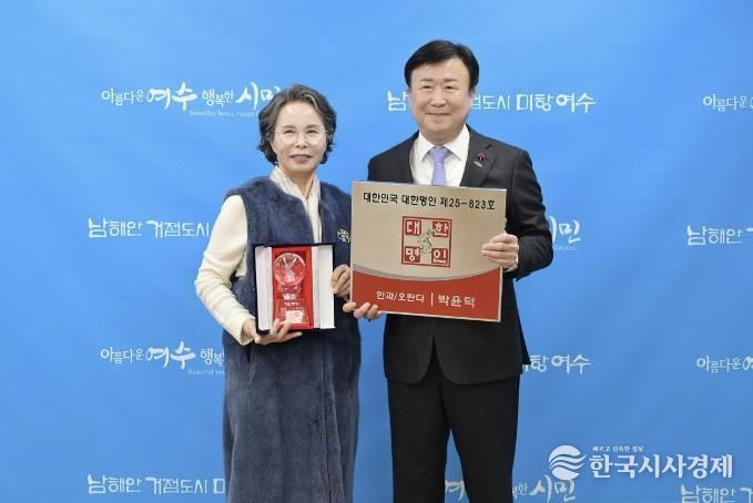 한국시사경제 전남취재본부 | 여수시가 ‘제35차 대한민국 대한명인 선정’에서 전통 한과·오란다 분야 1호 명인으로 송시마을 주식회사 박윤덕 대표가 선정됐다고 밝혔다.