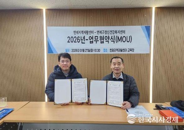 한국시사경제 의료보건팀 | 연제지역자활센터(센터장 정덕용)는 1월 27일 연제구정신건강복지센터(센터장 설장우)와 자활근로 참여자나 종사자를 대상으로 다양한 복지서비스 제공을 위한 상호 업무협약(MOU)을 체결했다.