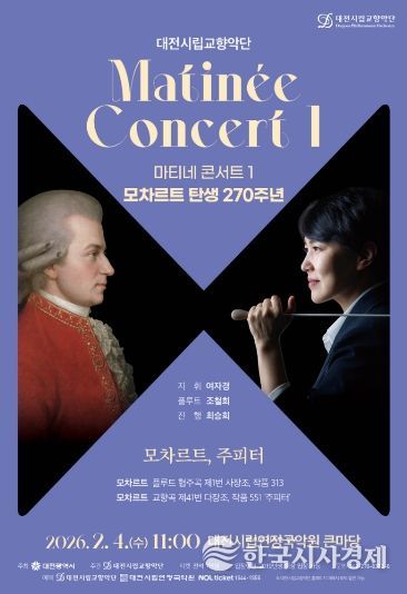 한국시사경제 대전취재본부 | 대전시립교향악단은 2월 4일 오전 11시, 대전시립연정국악원 큰마당에서 대표적인 기획 시리즈인 ‘마티네 콘서트’의 2026년 첫 무대를 연다.