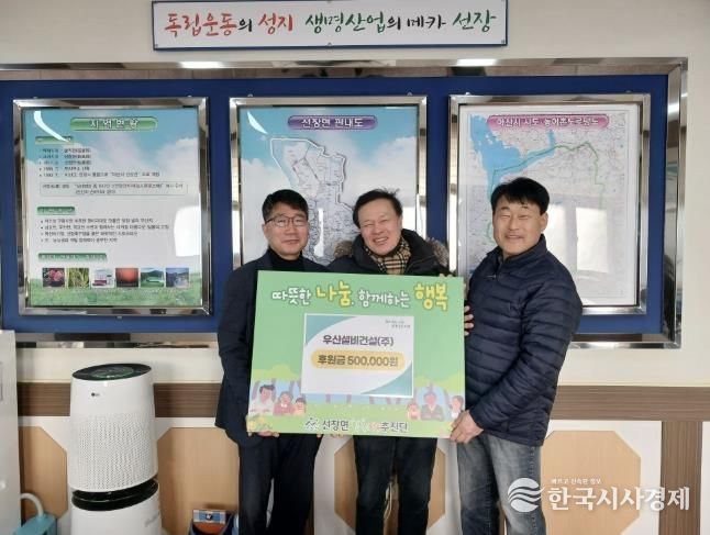 한국시사경제 충남취재본부 | 우신설비건설(주)은 29일 선장면 행복키움추진단과 후원 협약을 체결하여 관내 취약계층 지원을 위한 후원금 50만 원을 전달했다.