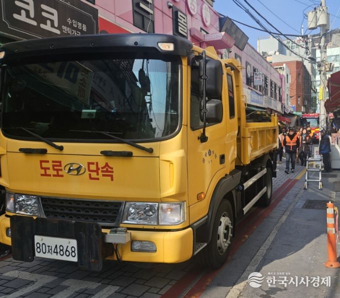부산 중구, 국제시장‘만물의 거리’서 소방출동로 확보 훈련