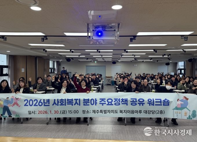 한국시사경제 문화팀 | 제주특별자치도는 지난 30일 제주도 복지이음마루 대강당에서 도와 행정시, 사회복지기관 및 시설, 출자·출연기관 관계자 100여 명이 참석한 가운데 ‘2026년 사회복지 분야 주요 정책 공유 워크숍’을 개최했다.
