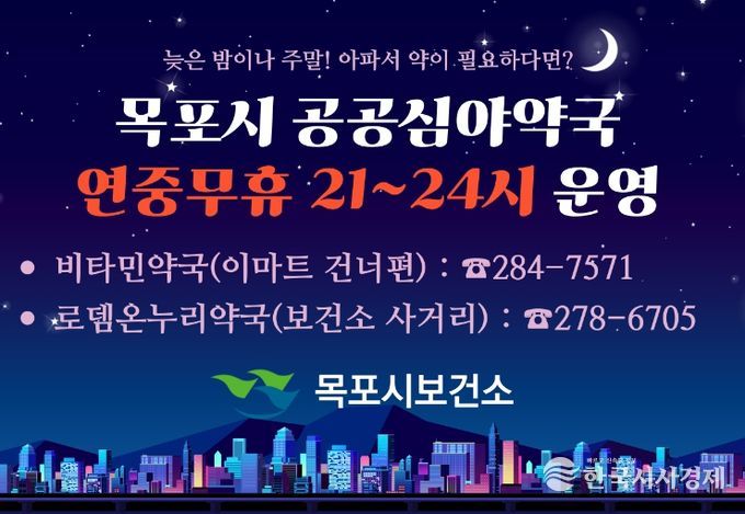 한국시사경제 의료보건팀 | 목포시는 심야시간대(21:00~24:00)에 연중무휴로 운영되는 공공심야약국 사업을 2026년에도 지속 추진하며, 시민들로부터 높은 호응을 얻고 있다.