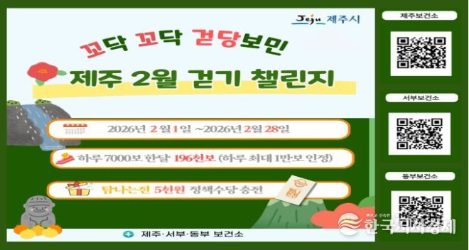 한국시사경제 의료보건팀 | 제주시는 시민들의 일상 속 걷기 실천을 활성화하기 위해 오는 2월부터 ‘꼬닥꼬닥 걷당보민’ 건강 걷기 챌린지를 운영한다.