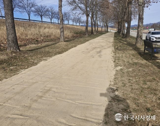 한국시사경제 경북취재본부 | 구미시가 시민 건강 증진과 자연친화적 여가 공간 확충을 위해 낙동강체육공원 일원에 ‘플라타너스 맨발길’을 정비했다.