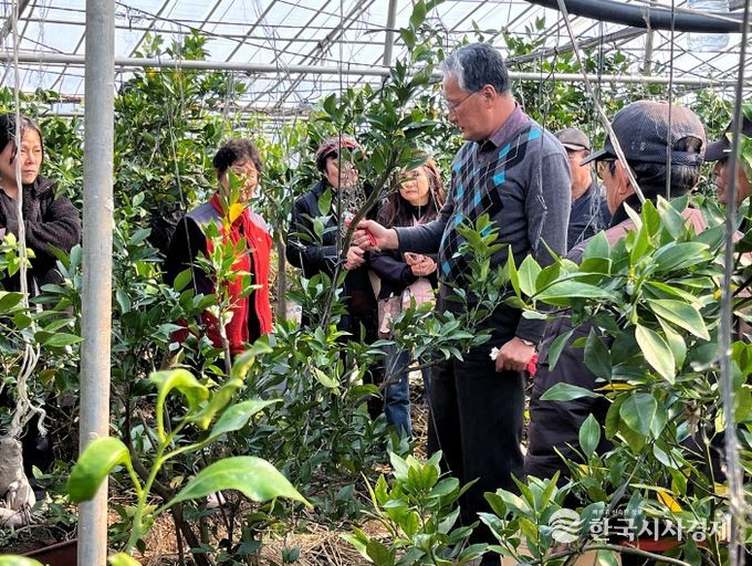 이번 교육은 만감류(레드향)와 감 재배 농가를 대상으로 농가 포장에서 직접 실습하는 방식으로 진행된다.