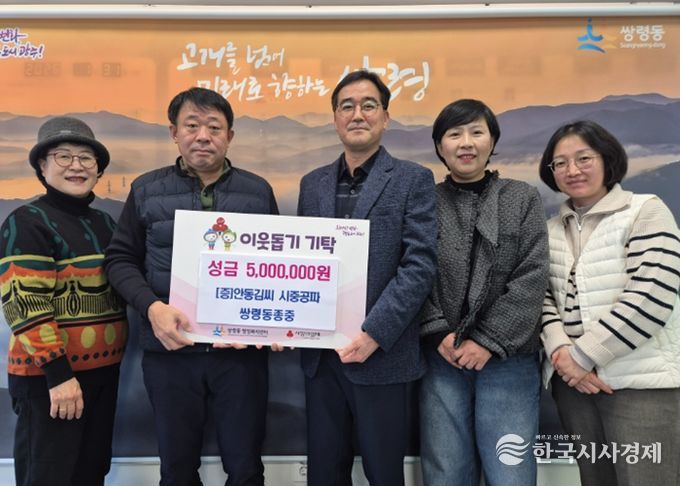 김형옥·장영수 쌍령동 지역사회보장협의체 공동위원장은 “지역사회를 위해 앞장서 주신 안동김씨 시중공파 쌍령동 종중에 감사드린다”며 “기탁해 주신 소중한 마음이 이웃들에게 온전히 전달될 수 있도록 정성을 다하겠다”고 밝혔다.