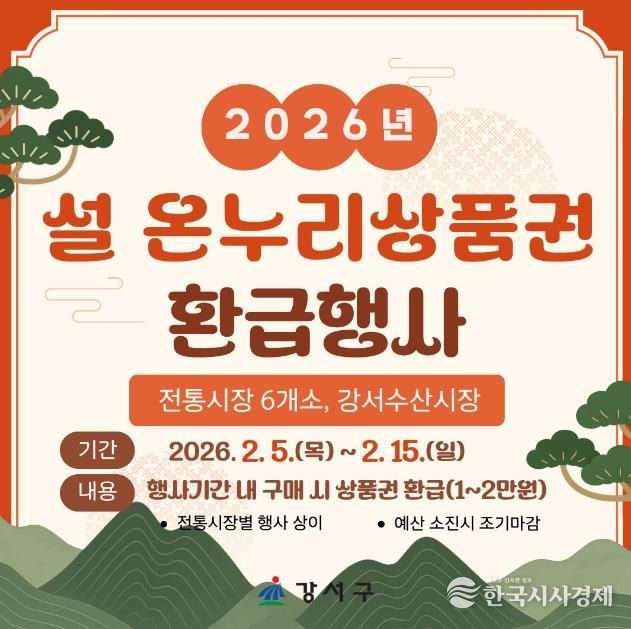서울 강서구는 설 명절을 맞아 전통시장에서 ‘온누리상품권 환급행사’와 전통 놀이 체험 등 다양한 행사를 개최한다.