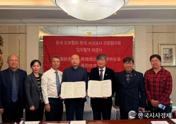 한국시사경제 문화팀 | (사)서귀포시관광협의회는 중국걷기협회와 3일, 북경 베이징 구루 접견실에서 양 기관이 주관하는 유채꽃 국제걷기대회와 북경 걷기대회를 성공적으로 추진하기 위해 업무협약을 체결했다고 밝혔다.