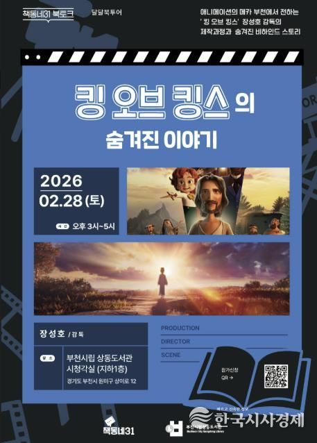 한국시사경제 경기취재본부 | 부천시는 책동네31과 협력해 오는 2월 28일 오후 3시, 부천시립상동도서관에서 애니메이션 ‘킹 오브 킹스’를 연출한 장성호 감독과 함께하는 ‘책동네31 특별 북토크’를 연다.