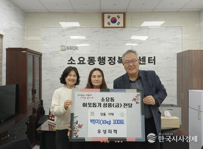 김승호 소요동장은 “어려운 이웃을 위해 한결같이 따뜻한 나눔을 실천해 주신 우성피혁 정소현 대표님께 깊이 감사드린다”라고 말했다.