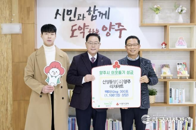 한국시사경제 경기북부취재본부 | 양주시는 지난 3일 관내 신성통상㈜ 리치마트가 설 명절을 맞아 양주시에 백미 300포(약 1,100만 원 상당)를 기부했다고 밝혔다.