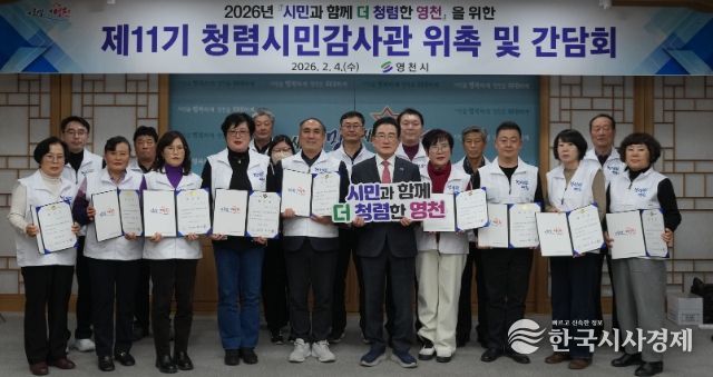한국시사경제 경북취재본부 | 영천시는 4일 시청 영상회의실에서 ‘제11기 청렴시민감사관 위촉 및 청렴영천 간담회’를 개최하고, 청렴한 시정 구현을 위한 다양한 의견을 수렴했다.
