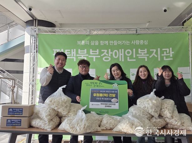 한국시사경제 사회팀 | 평택북부장애인복지관은 2월 3일 현대자동차 송탄지점 김재원 후원자로부터 지역사회 장애 당사자 및 장애인 가정의 따뜻한 설 명절을 위한 떡국떡을 후원받았다.