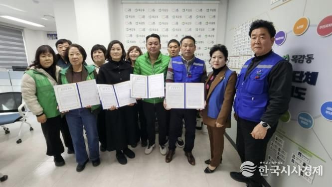 한국시사경제 문화팀 | 시흥시 목감동 행정복지센터는 지난 2월 3일 취약계층의 복지증진과 복지 사각지대 해소를 위해 동 행정복지센터 회의실에서 목감동 새마을남녀협의회 및 시흥시 처음처럼 봉사회 등 관계단체와 업무협약을 맺었다.