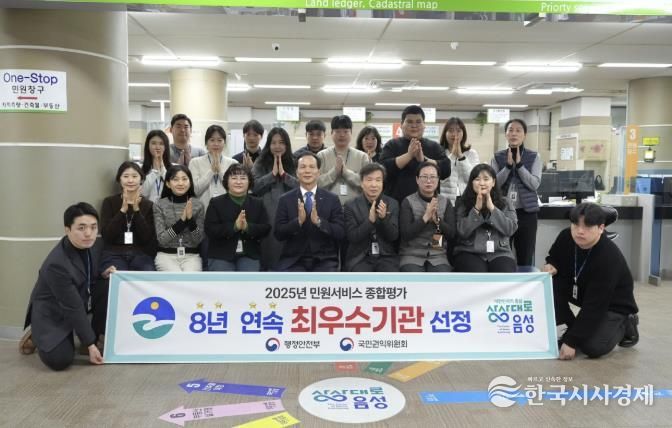 한국시사경제 오영주 기자 | 음성군이 행정안전부와 국민권익위원회가 공동 주관한 ‘2025년 민원서비스 종합평가’에서 최고 등급을 받아 8년 연속 최우수기관으로 선정되며, 탁월한 민원행정 역량을 다시 한 번 인정받았다.
