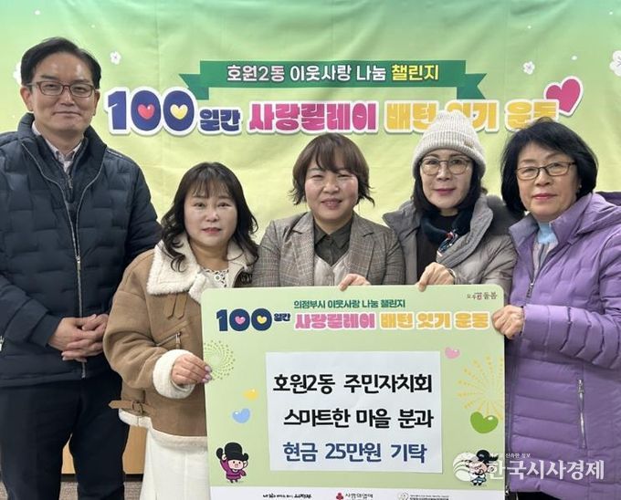 한국시사경제 경기북부취재본부 | 의정부시 호원2동주민센터는 지난해 12월부터 올해 2월까지 호원2동 주민자치회 회장 김규오, 부회장 이영배를 비롯한 아름다운 마을·스마트한 마을·살기 좋은 마을 분과가 지역 내 어려운 이웃을 돕기 위해 성금 50만 원, 쌀 50kg, 컵라면 10상자, 쌀국수 200인분, 사과즙 30박스를 기탁했다고 밝혔다.
