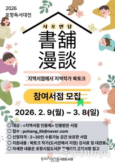 한국시사경제 노승선 기자 | 포항시는 오는 9일부터 내달 8일까지 ‘2026 포항독서대전’ 연간 프로그램인 ‘서포만담(書舖漫談)’에 참여할 지역 서점을 모집한다.