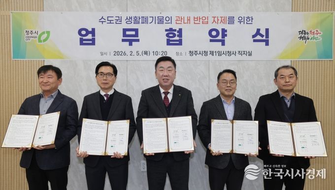 한국시사경제 사회팀 | 청주시는 5일 임시청사 직지실에서 지역 내 민간 폐기물 소각업체 4개소와 수도권 생활폐기물의 청주 반입 자제를 위한 업무협약을 체결했다.
