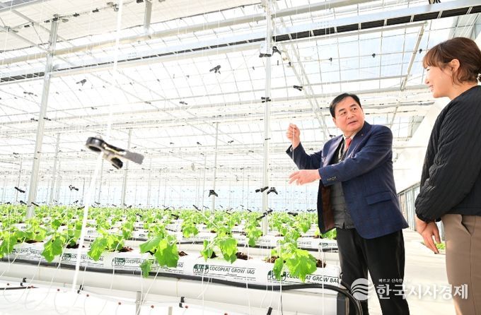 해당 농가는 국비 공모사업 지원을 포함해 총사업비 11억 원을 투입해 4,577㎡ 규모의 스마트팜 온실을 조성했으며, 보온시설, 내·외부 환기시설, 양액기 등 첨단 스마트팜 설비를 구축하여 오이를 재배하고 있다.